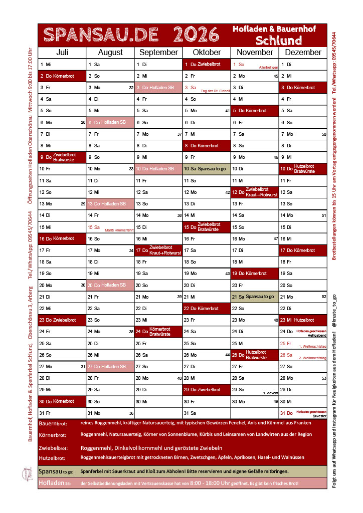 Bitte denkt daran, eure Spansau rechtzeitig vorzubestellen und bringt zur Abholung eigene Gefäße mit.