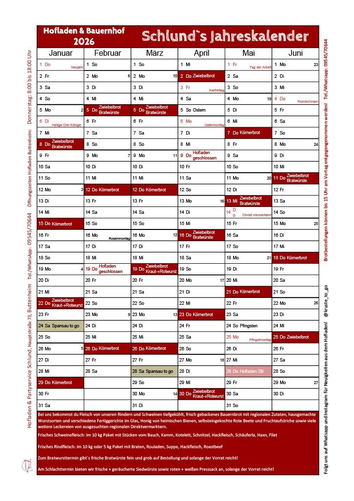 Wann wird das nächste Rind geschlachtet, gibt es endlich wieder frische Bratwürste, welches Brot wird in der aktuellen Woche gebacken,...?